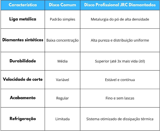Para quem deseja escolher o melhor disco diamantado para pedra, a recomendação é sempre buscar marcas que ofereçam controle de balanceamento dinâmico e soldagem precisa, como a JRC Diamantados, que utiliza tecnologia avançada em metalurgia do pó.