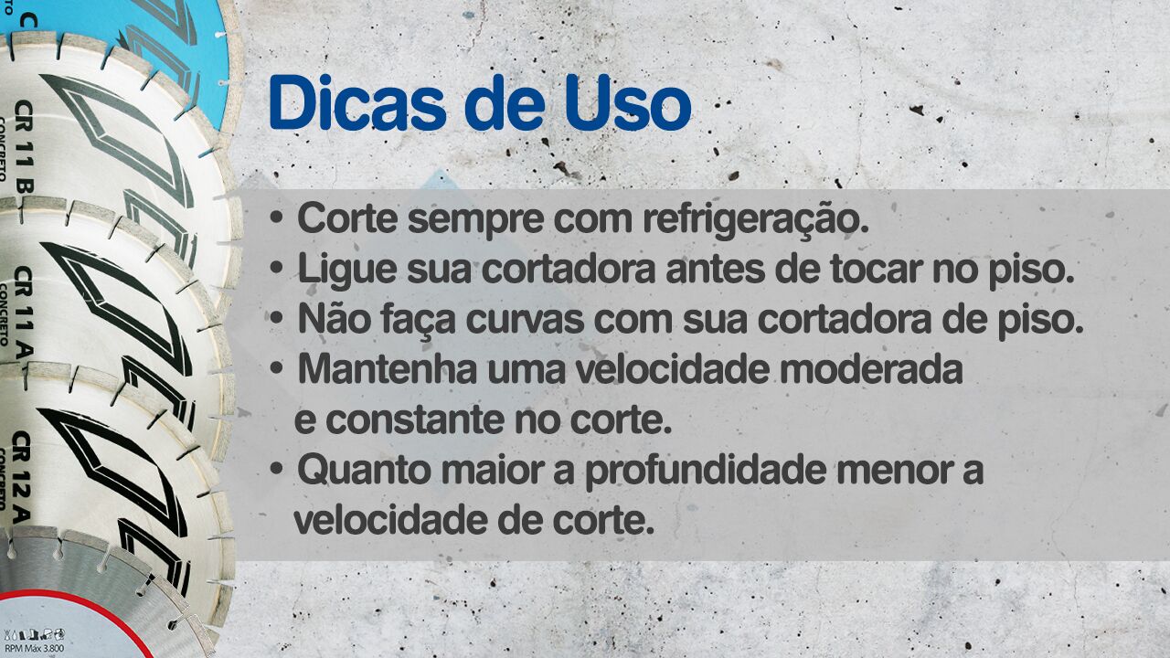 NOTA: Qualquer alteração nas características de fabricação do disco diamantado ocasionará na perda de garantia imediata, tais como: